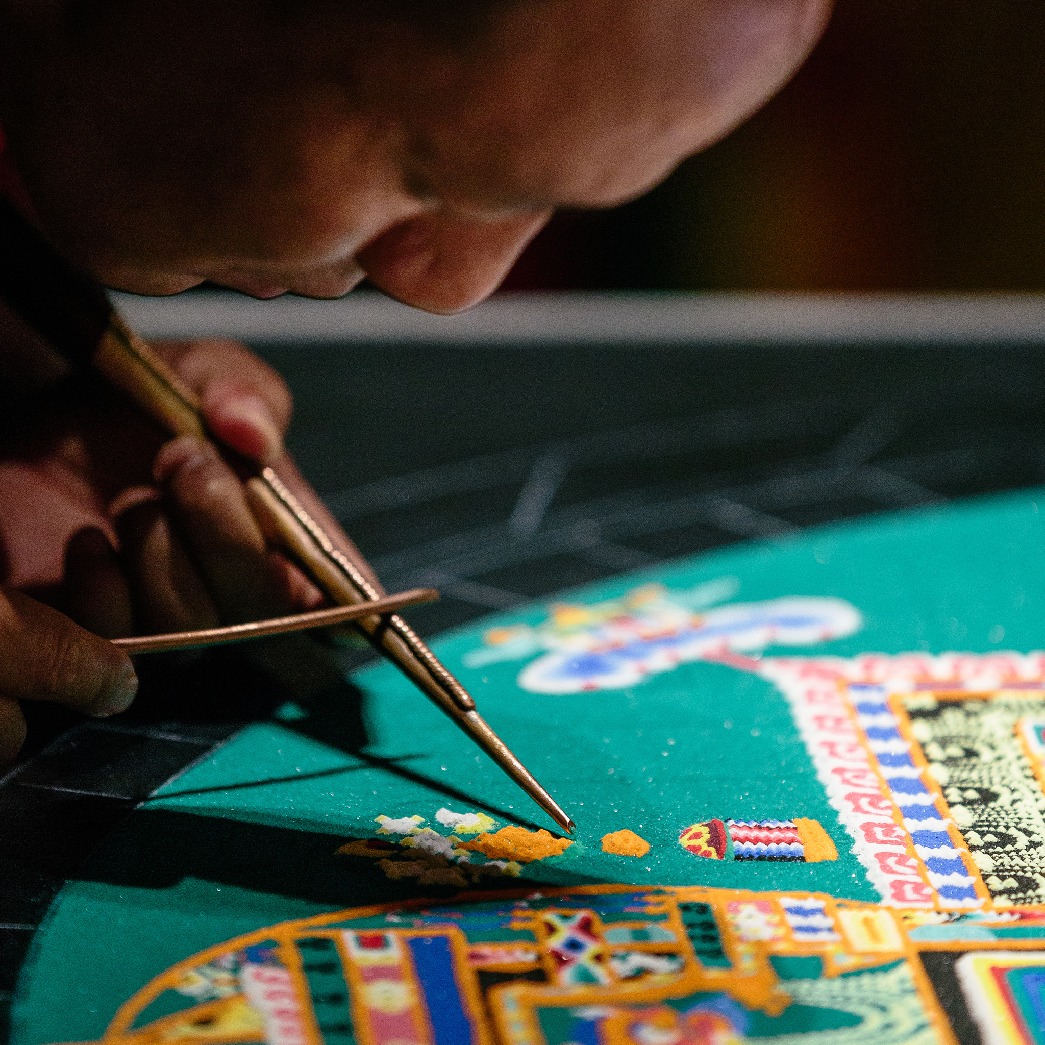 I read about the mandala installation at the Asia Society Texas Center with monks from the Drepung Loseling Monastery, and I knew that I wanted to go. I had seen a manadala at the Menil in 2014, and it had been worth the time to visit and photograph the monks layering all the colors and details. It was a similar experience at the Asia Society, except this time I was able to attend the opening, and get some coverage of the process from the first to the last day. Viewing the process of creating and then erasing the mandala over the course of four days, while capturing the details in camera, was a way to slow down during the time that I was there.
